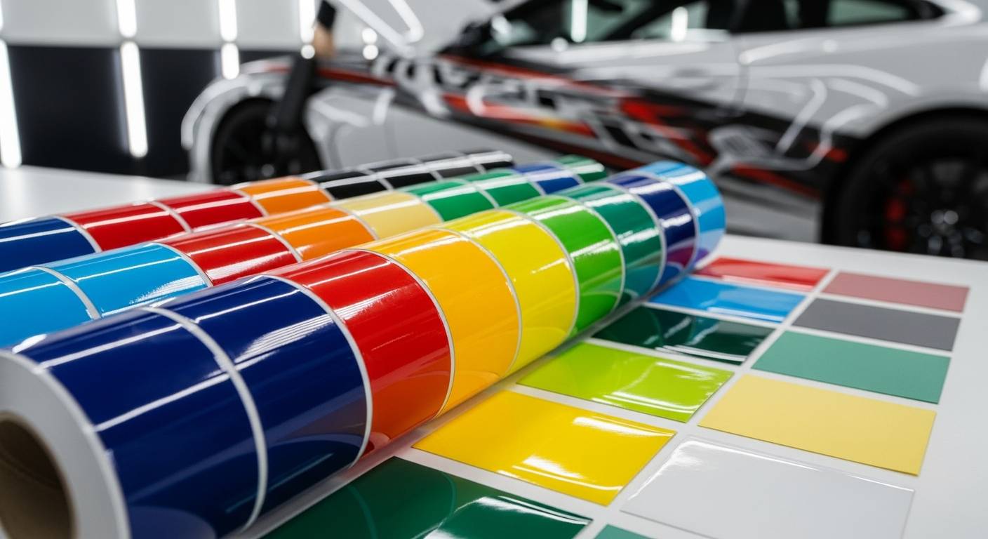 サンプルを入手したら、確認する場所も重要です。多くの人は室内で開封して色を確認しがちですが、車用ステッカーの場合は必ず「晴れた日の屋外」で、実際に施工する車のボディにサンプルを当てて確認してください。蛍光灯の下と太陽光の下では、色の深みや艶の見え方が全く異なります。特にメタリック系や鮮やかなソリッドカラーは、屋外で見ると印象が大きく変わることがあります。